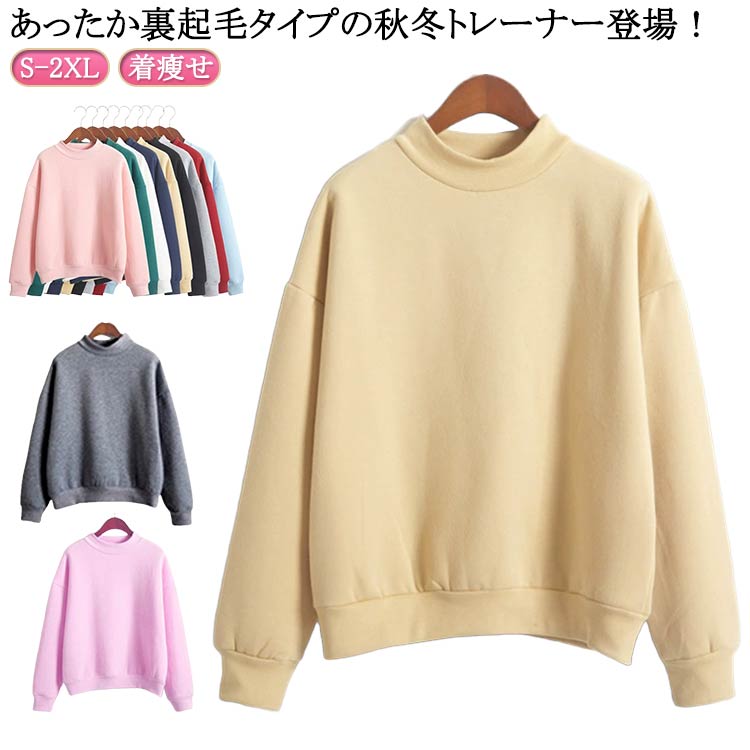 ボトルネック ~2 スエット プルオーバー 裏起毛 無地 シンプル ゆったり部屋着 通勤 通学 ルームウェア