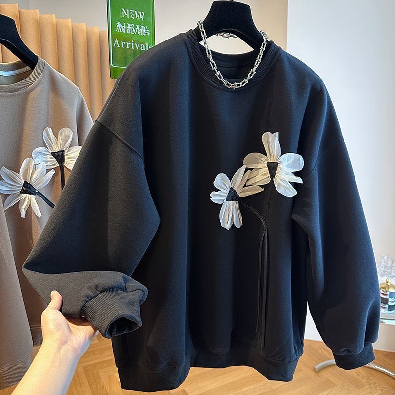 裏起毛トレーナー レディース トップス 厚手 丸首 大きいサイズ オーバーサイズ 秋冬 秋服 冬服 長袖 花柄 ゆったり 体型カバー 大人 可愛い LUFA314 カジュアル