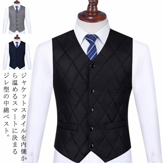 メンズ スーツ ジレベスト 中綿入り 防寒 暖かい インナーダウン 紳士 ベスト ジレ 無地 綺麗め カジュアル