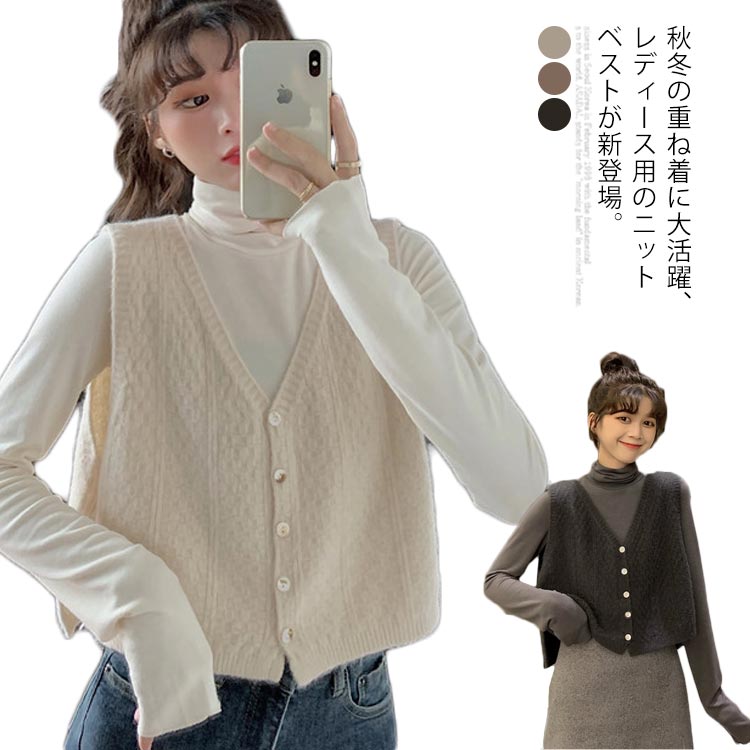 ~ ニットベスト ネック 重ね着 大人女性 可愛い おしゃれ 秋冬