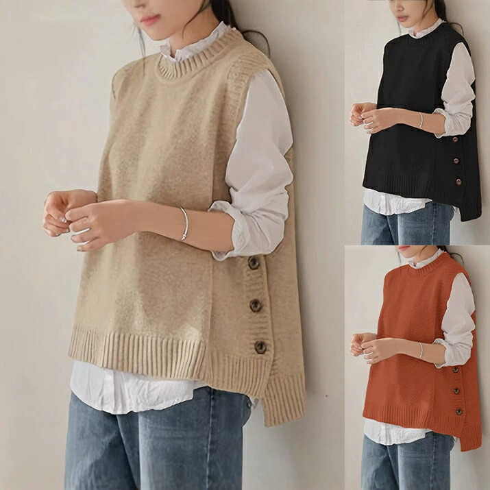 ベスト レディース ニットベスト トップス セーターベスト ネック 重ね着 ゆったり 柔らかい 暖かい 無地 体型カバー 大人 学生 おしゃれ 春 秋 冬