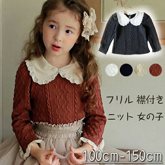 キッズ ニットセーター 女の子 ニットカットソー 綿 襟付き ガールズ フリル ニット セーター トップス インナー 長袖 カジュアル 秋物 冬物 防寒 暖かい 合わせやすい 100 1 女児