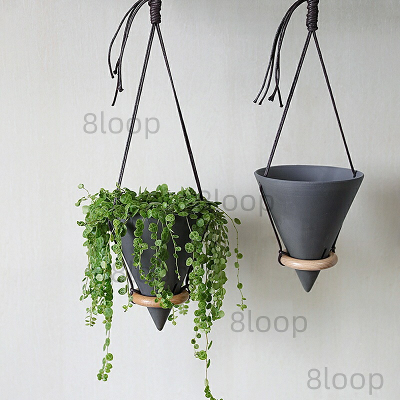 プランターカバー ハンギング 鉢カバー 円錐 三角 とんがり 吊り下げ 輪っか ブナの木 陶器観葉植物 吊るす ハンギングポット 鉢底穴あり 植木鉢 多肉植物 屋内 プラントハンガー 収納ぶら下 屋外