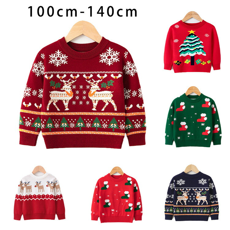 ニットセーター 供服 キッズセーター 秋冬物 パーカー 可愛い サンタ服 クリスマスコスチュームトップス トレーナー スウェット 長袖 キッズ 女の子 男の子 子ども服 トップス 100-1 こども服