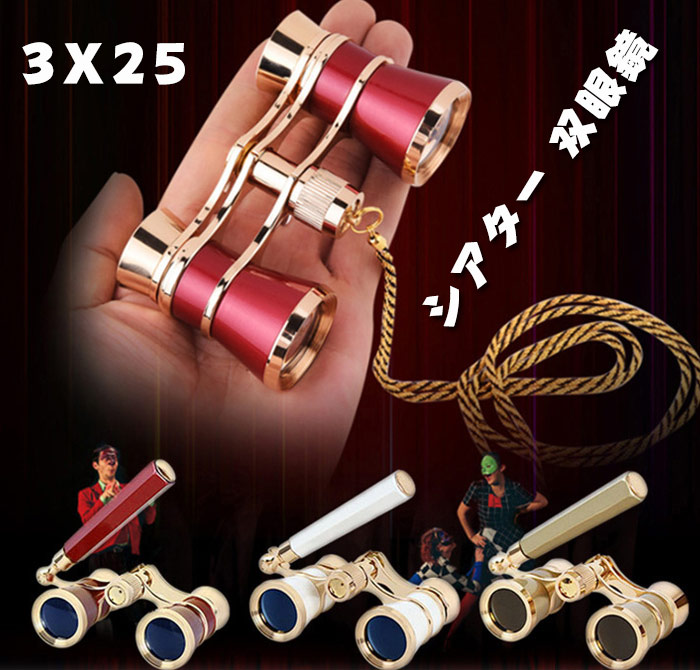 シアター 双眼鏡 ライブ 望遠鏡 3x25 小型双眼鏡 3倍 ミュージカル コンサート 大人折り畳み式のハンドルが付いているレトロなガラス双眼鏡 小型 ライブ用 オペラグラス コンサ 収納