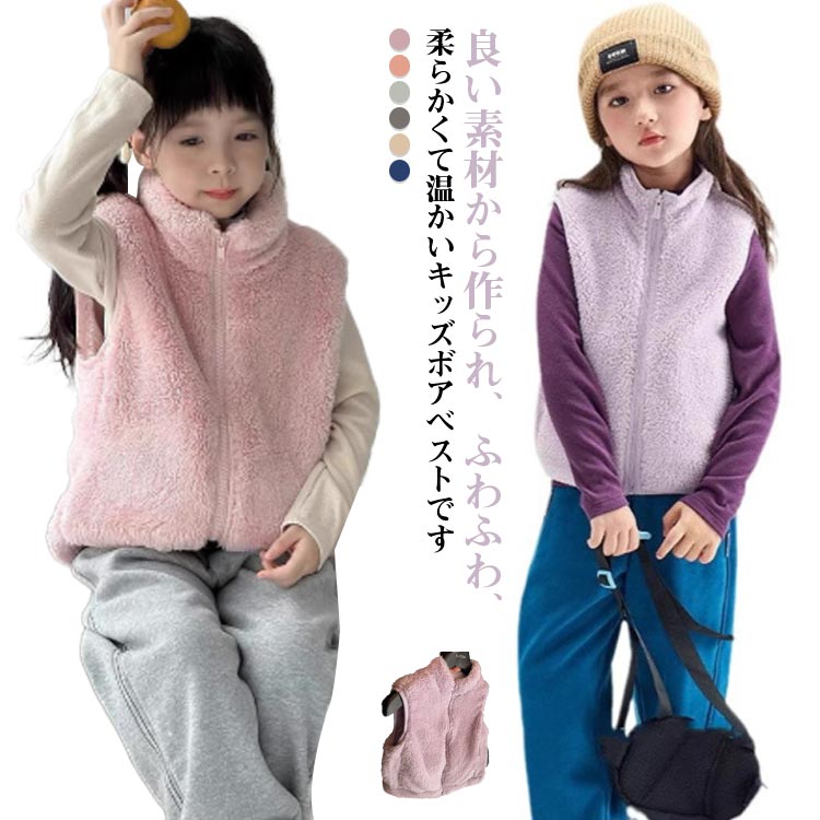 重ね着 ベスト もこもこ 袖なし フリース キッズ 秋冬 春 ジャケット ボアベスト アウター 女の子 男の子 子供用 ポケット ルームウェア ト ジップアップ