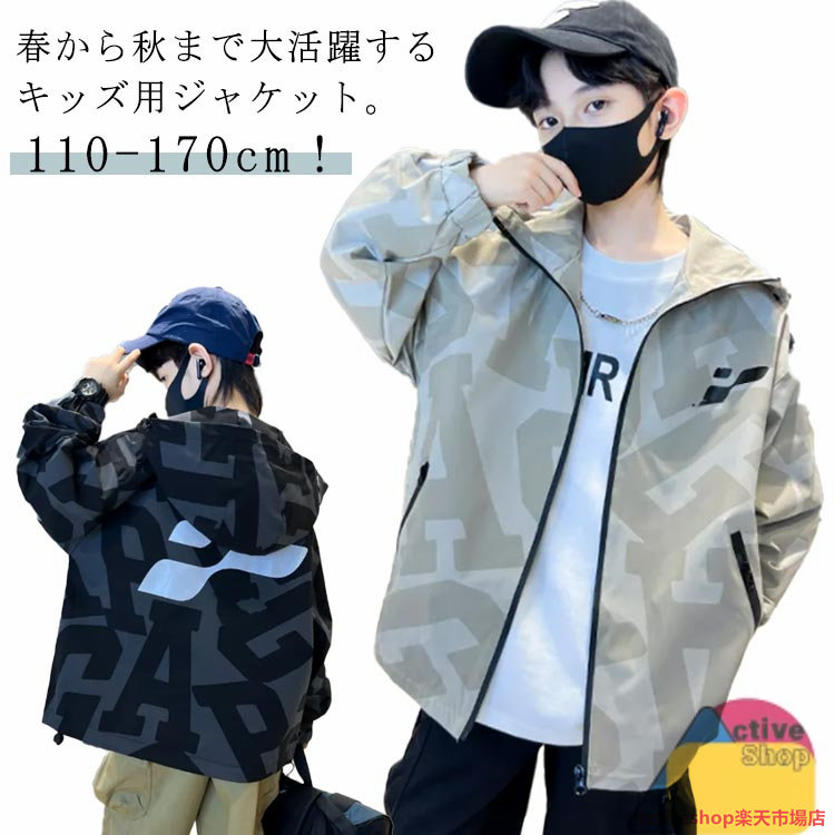 ジャケット キッズ ボーイズ ジャンパー ブルゾン マウンテンパーカー 男の子 アウター 子供服 小学生 ジップアップパーカー フード付き 薄手 防風 軽量 裏メッシュ 春 秋 登校 普段着 1 無地