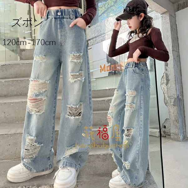 子供服 ズボン 女の子 デニムダメージジーンズ かわいい シンプル パンツ キッズ ボトムス 長ズボン 子供 学生 レジャー デニムロングパンツ ジーパン ジーンズ 春着 秋着 冬着
