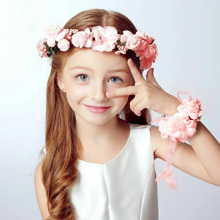 お姫様 結婚式 ヘアアクセサリー 子供服 キッズ フォーマル 発表会 女の子用 子供 ドレス フラワーガール 子どもドレス子供花冠 クラウン ウエディング フラワーズ リストバンド2 ブライダル