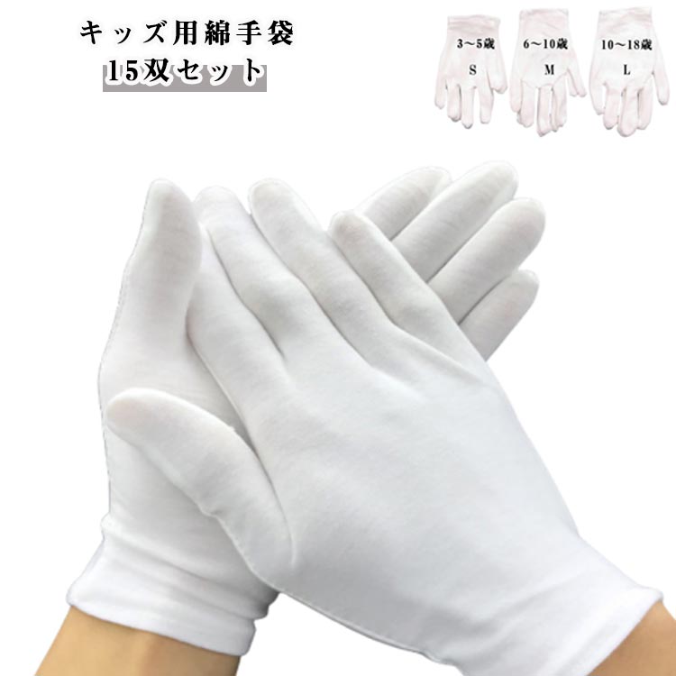 保湿手袋 爪噛み対策 キッズ 白手袋 子供 15双セット 小学生 綿 手袋 綿手袋 かきむしり対策 手荒れ 幼児 寝る時 防止 S M L 女性 乾燥対策 ナイトグローブ コット 就寝用