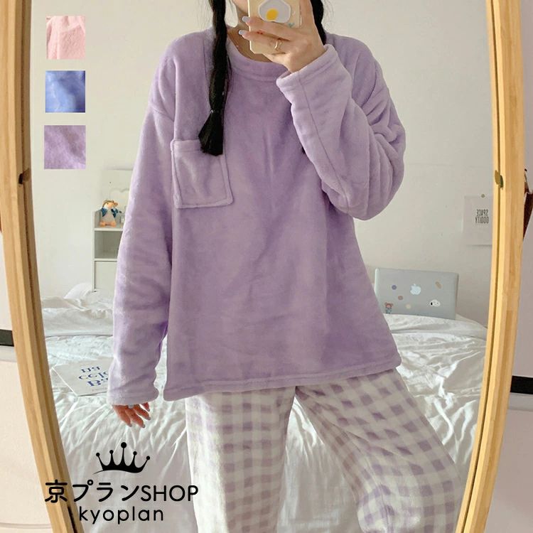 レディース モコモコ パジャマ 上下セット 長袖 秋冬パジャマ ル
