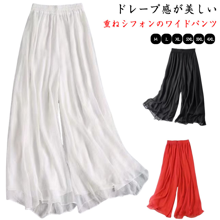 ペチコート ロングパンツ ワイドパンツ シフォン ぺチパンツ 二重 インナー 下着 静電気防止 透け防止 レディース スカートの下 履くもの 肌隠し 重ね着 ペチパンツ 結婚式