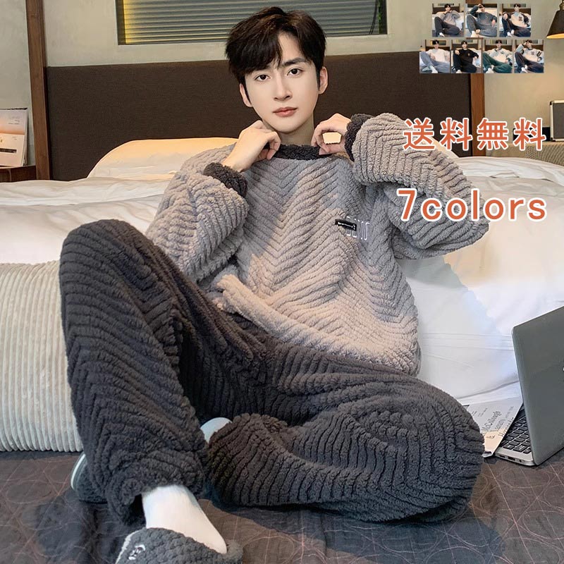 肌に優しい ルームウェア ファッション 落ち感 もこもこ やわらか ふんわり カラー豊富 冬用 暖かい メンズ パジャマ 柔軟