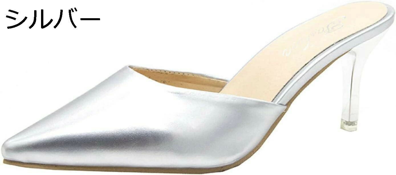 大きいサイ 大人フェミニンなスタイリッシュミュール レディース ハイヒール ポインテッドトゥ かかとなし サンダル 前ふさがり