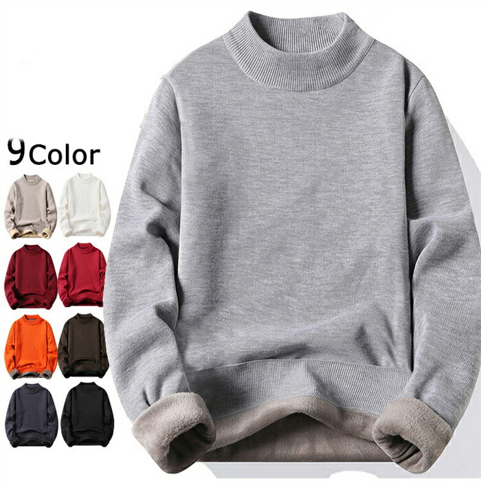 送料無料 ニット セーター メンズ クルーネック モックネック 細身 暖かい インナー