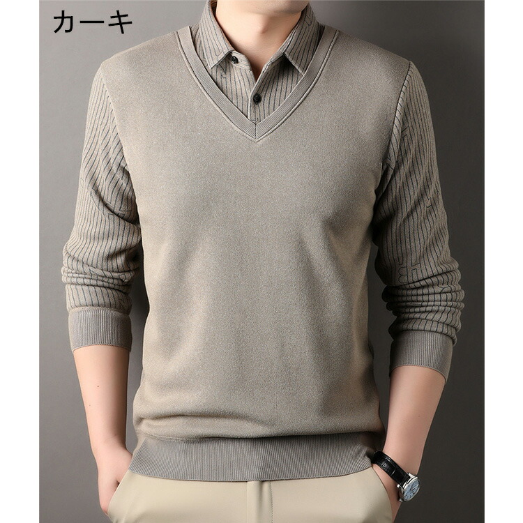 【 新作!!5サイズ展開 選べる4カラー 洗濯機?】ニット セーター メンズニット メンズセーター 服 トップス レイヤード 重ね着風 厚手 裏ボア 毛玉できにくい シンプル 柔らかい