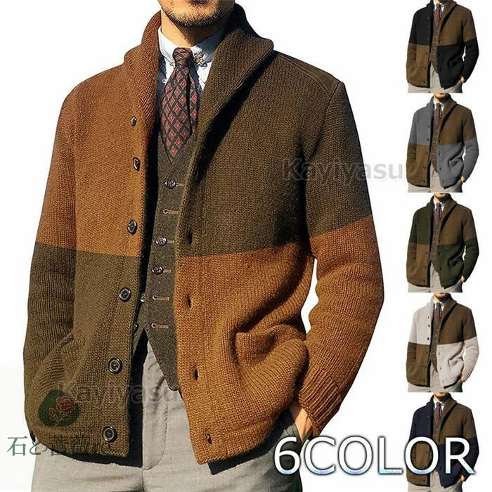 カーディガン メンズ ニットコート 羽織 かっこいい ニットジャケット アウター 前開き ゆった感 カジュアルコート 切り替え オシャレ 春秋冬コーデ セーター生地 トップス 欧米風 紳士服 男性用