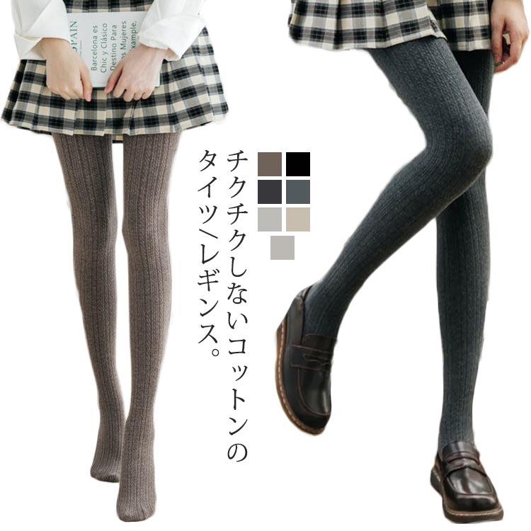 ケーブル編み タイツ レディース レギンス トレンカ 無地 綿 タイト