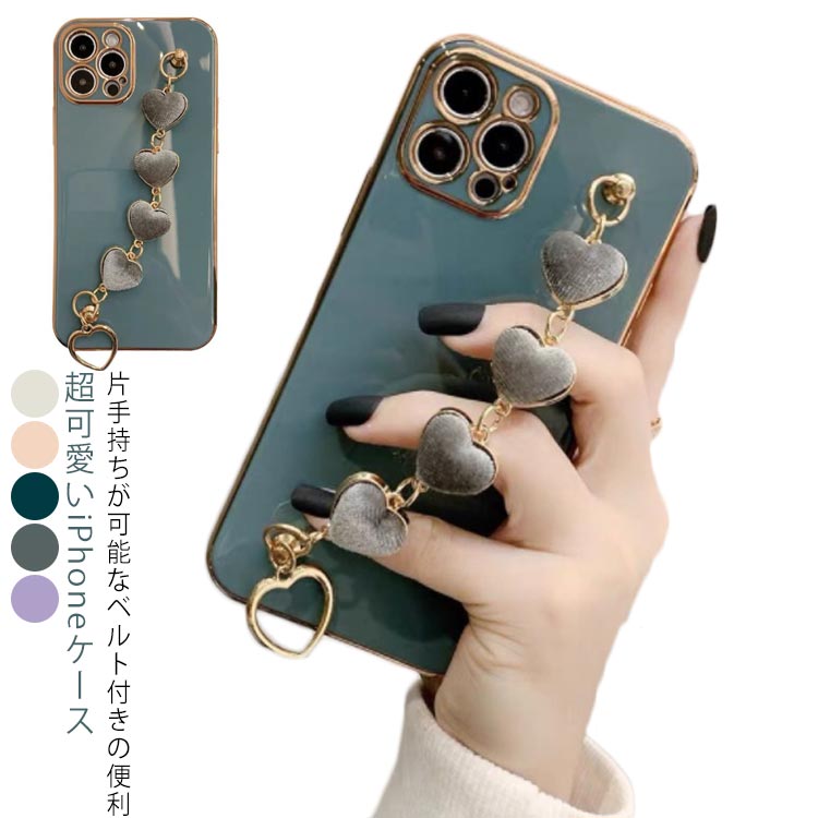 iPhone ケース 13ケース ハート柄 13Proケース 13miniケース 13Pro Maxケースチェーン付き ハートチェーン ハート かわいい 13シリーズ