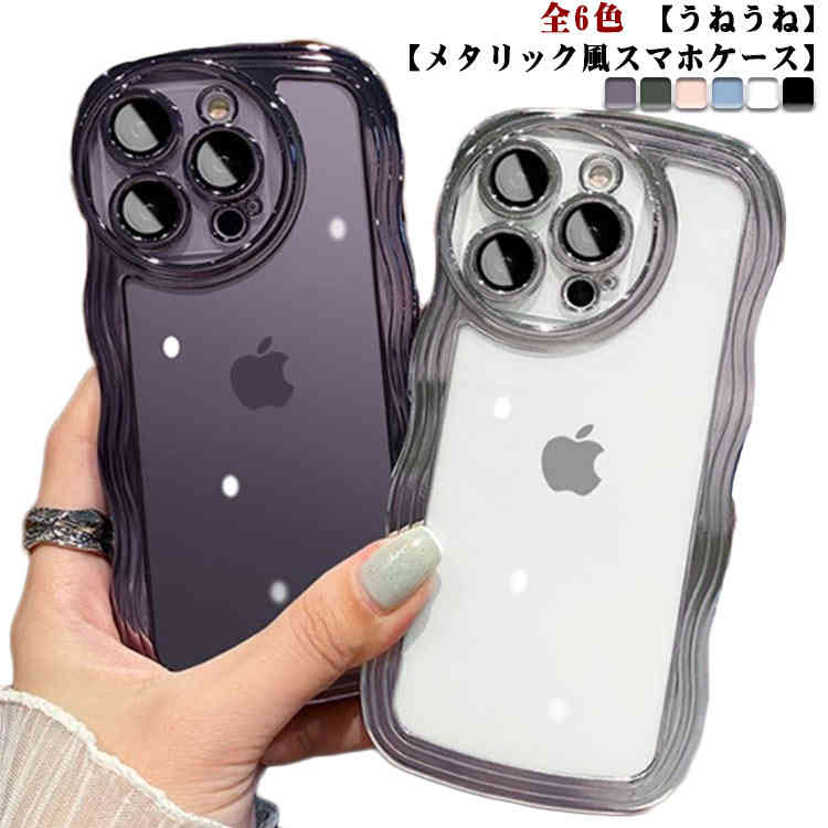 iP iPhone14 めっき ケース クリア スマホケース 保護フィルム 耐衝撃 指紋防止 うねうね iPhoneケース 多機種対応 メタリック風