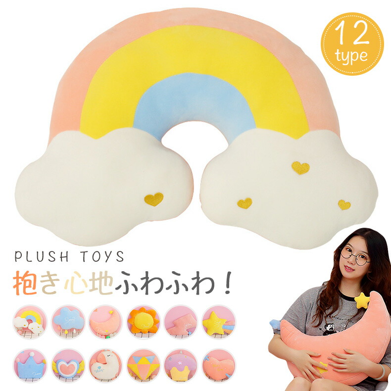 抱きまくら クッション ちいさめ ぬいぐるみ もちもち かわいい アニマル もちふわ 可愛い 添い寝まくら星王冠太陽 虹 雲 月グッズ 保育 赤ちゃん 誕生日 子供 ピンク クリスマス プレ ホワイト
