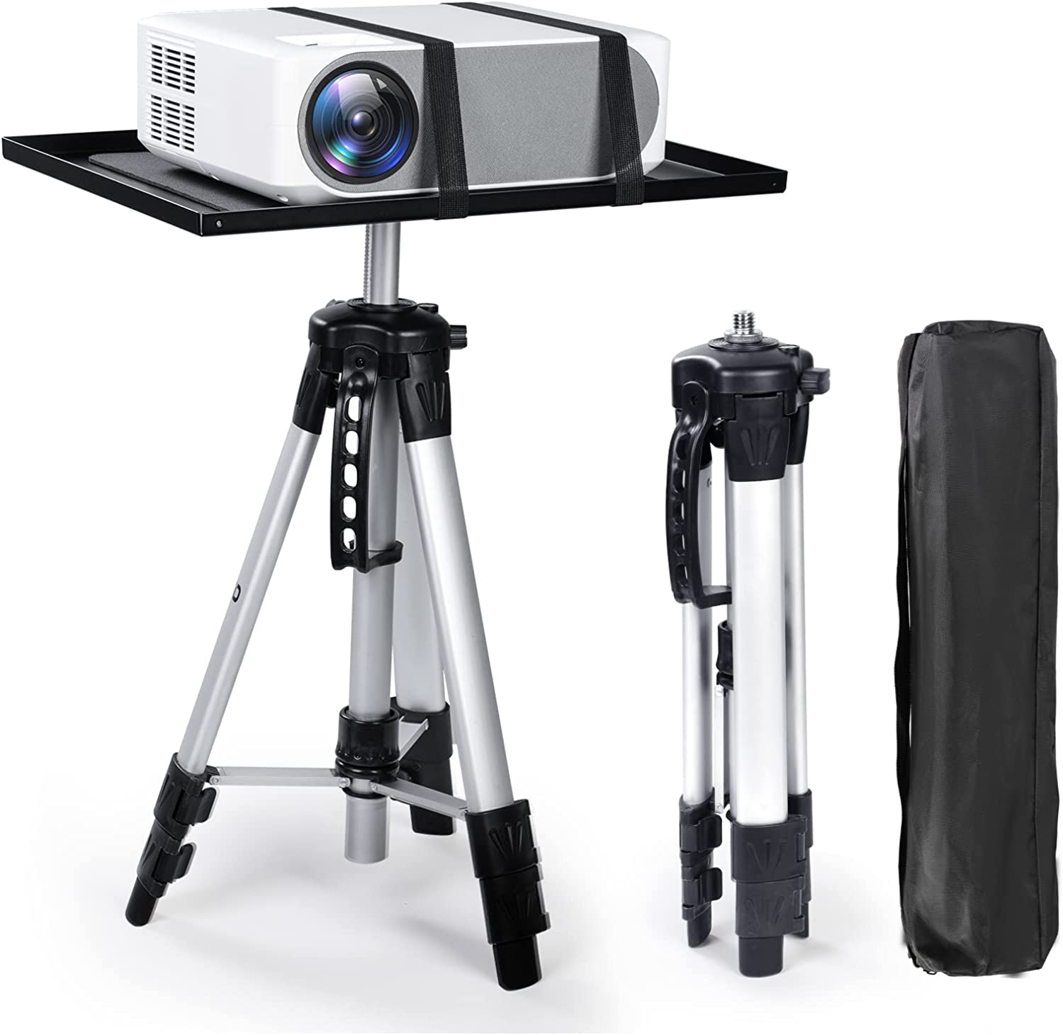 プロジェクター台 三脚式 プロジェクタースタンド 3段階 高さ調整可能 耐荷重15KG 安定性 取り外し 折り畳み 360°足調整 トレー付き オフィス ホームシアターに対応 アルミ合金製 シ 会議室