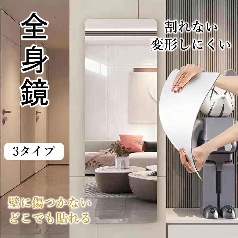 割れない鏡 全身 貼る 一体型 全身鏡 姿見 超軽量 軽い 賃貸 つなぎ目なし どこでも貼れる 壁に傷つかない 貼る鏡 壁掛け鏡 ミラー アクリルミラー ウォールミラー 化粧鏡 ソフトミ ミラーシート
