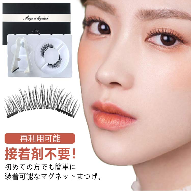 磁気まつげ つけまつげ 付け睫毛 マグネットまつ毛 接着剤なし 磁気 装着クリップ付き ナチュラルまつげ 再利用可能 超軽量 着脱簡単 メイクアップ 初心者 接着剤不要