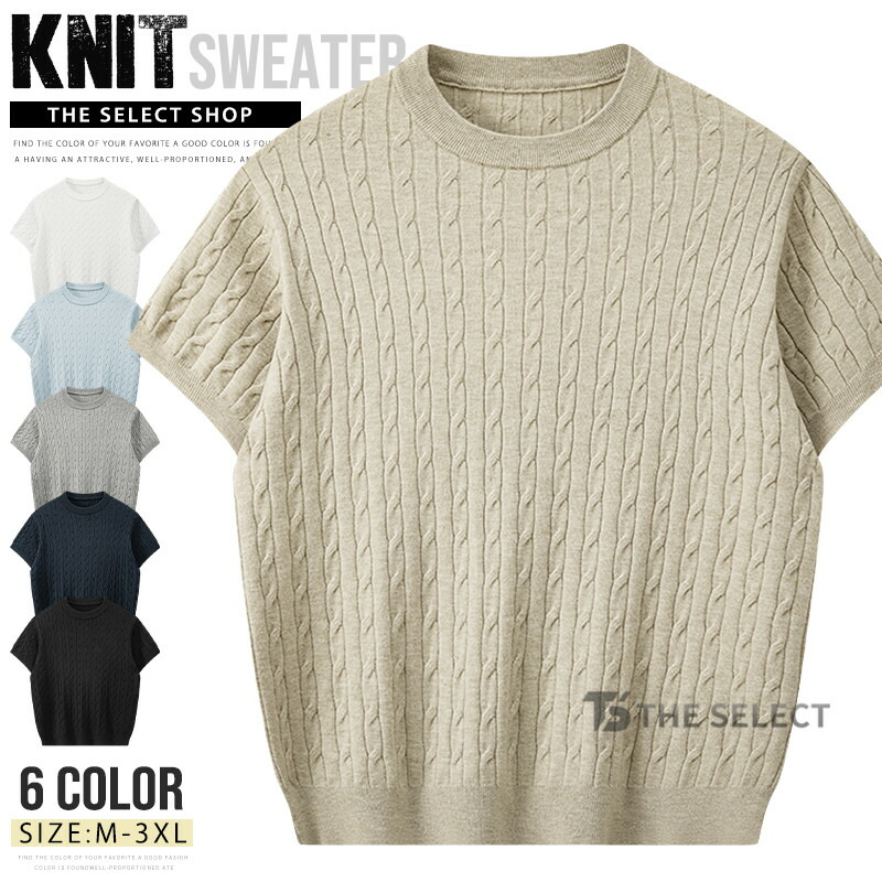 サマーニット メンズ サマーセーター ニットTシャツ トップス 薄手 ゴルフ ニット uネック 無地 ケーブル編み ニットウェア シンプル サーフ系 ニットセーター 洗えるニット 春物 春 夏服 春服