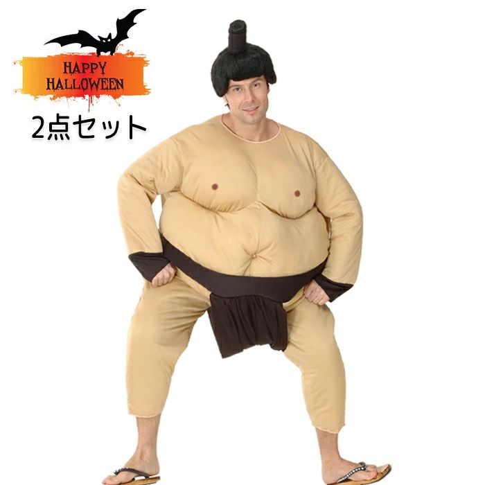 ハロウィン仮装 コスプレ 衣装 お相撲さん 力士 男性用 大人用 メンズ 2点セット カツラ付き 着ぐるみ 飲み会 全身コスプレ 学園祭 関取 出し物 忘年会 可愛い パーティグッ 仮装用品
