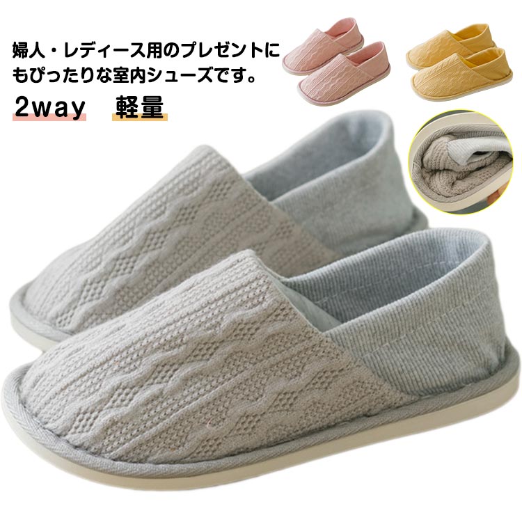 ルームシューズ 室内履き スリッパ かかとあり かかとなし 2way 滑り止め 通気性 介護用 入院 病院 産後 軽量 リビング キッチン トイレ シンプル 洗える レディース 春夏 婦人 女性 秋冬