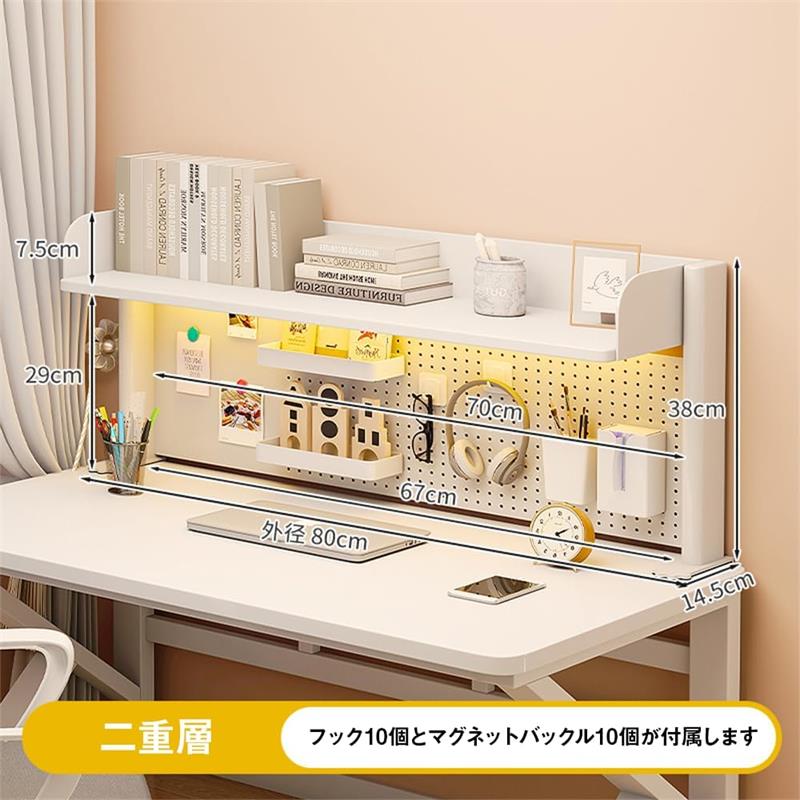 デスク上置棚 洞洞板置き物架 デスクトップ収納ラック デスク収納ラック 有孔ボード 鉄製 卓上 棚 机上収納 上置き棚 雑品収納ラック 組立式 多機能 オフィス 事務用品 文房具 学校