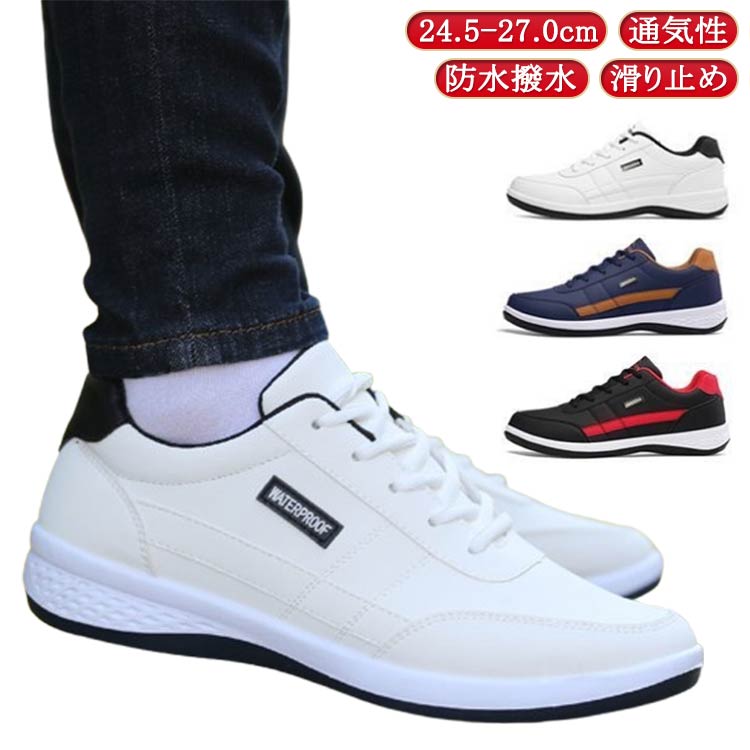 スニーカー メンズ 防水 カジュアルシューズ カジュアルスニーカー レースアップ 幅広 ウォーキングシューズ 軽量 厚底 革靴 運動靴 紳士靴 合皮 撥水 ビジネス ゴルフ 歩きやすい ス ランニング