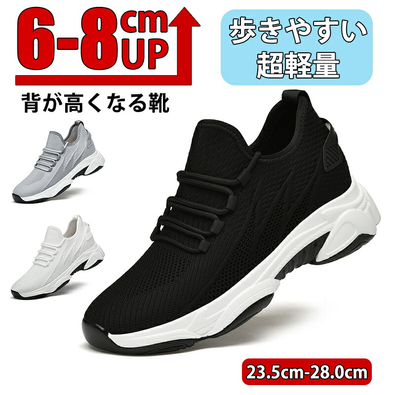 ウォーキングシューズ スニーカー 厚底 クッション性 スポーツ シューズ シークレットブーツ 滑り防止 通学 ランニング アウトドア ジム 6-8cmアップ 軽量 歩きやすい 疲れにくい 身長アップ