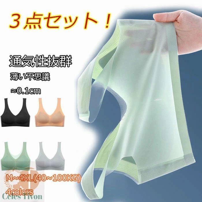 極薄 ブラジャー 3枚セット ノンワイヤーブラ 涼しい スポーツブラ 吸水速乾 育乳ブラ