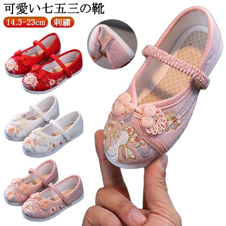 草履 靴 七五三 子供靴 歩きやすい キッズ 草履 14.3-23 和柄の靴 和装 子供 刺繍 赤ちゃん靴 出産祝い 安全 幅広 軽量 通気 歩きやすい 柔らかい 赤 ピンク ホワイト