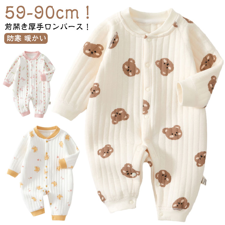コットン 男の子 73 くま 長袖 ロンパース 女の子 66 中綿 キルト 3重 綿 59 あったか 赤ちゃん 前開き 新生児服 ウサギ おしゃれ かわいい 厚手 80 90 ル ベビー服